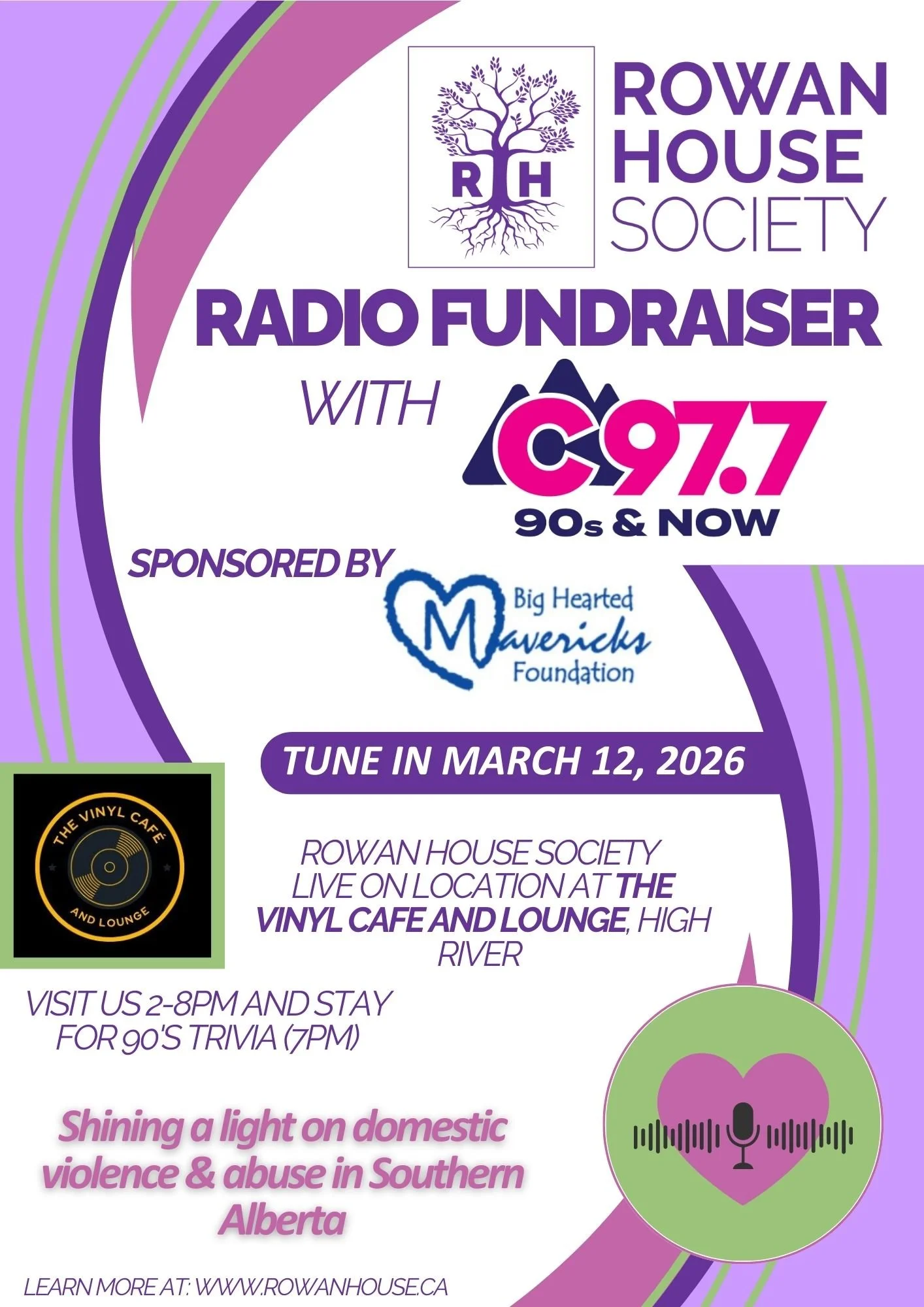 Tune in to 97.7 the 90s & NOW on Thursday, March 12, 2026 to help support us in breaking the cycle of domestic violence and abuse in Southern Alberta.